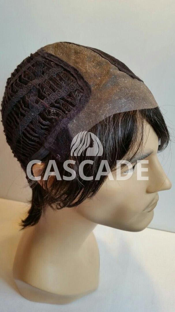 Шапочка парика, в области пробора, состоит из монофиламента, который имитирует естественный рост волос. Монофиламент объединен с Lace Front (невидимая удлиненная фронтальная линия роста волос, которая состоит из тонкой прозрачной сварной сеточки) в одну общую основу. Все это позволяет делать различные варианты укладки, открывать лоб и поднимать челку. При этом краевая линия перехода к волосам парика совершенно не заметна. Остальная часть парика выполнена из тресса.