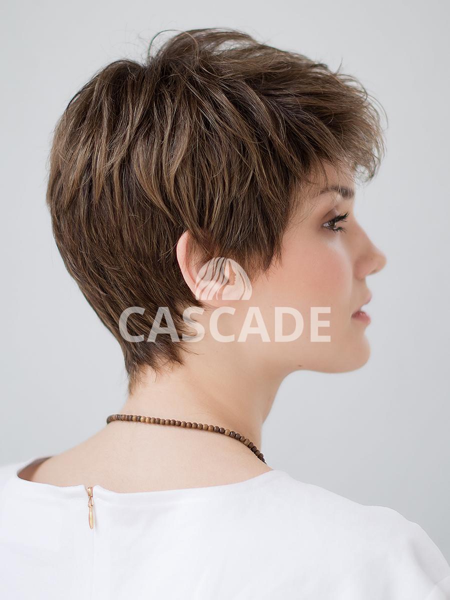 Шапочка парика в области макушки состоит из монофиламента, который имитирует естественный рост волос. Таким образом повторяется правильное расположение волос, как и должно быть в естественной, натуральной прическе данного типа. Остальная часть выполнена из тресса.