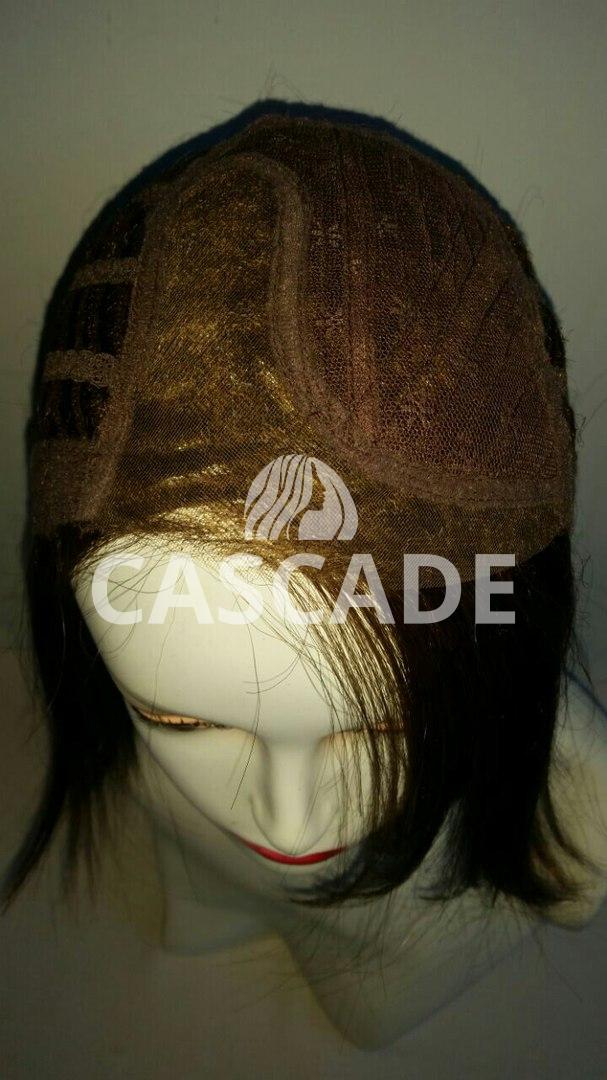 Шапочка парика в области пробора состоит из монофиламента, который имитирует естественный рост волос. Монофиламент объединен с Lace Front (невидимая удлиненная фронтальная линия роста волос, которая состоит из тонкой прозрачной сварной сеточки) в одну общую основу. Все это позволяет делать различные варианты укладки, открывать лоб и поднимать челку. При этом краевая линия перехода к волосам парика совершенно не заметна. Остальная часть парика выполнена из тресса.