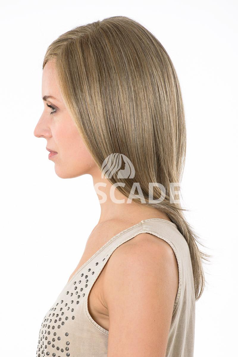 Технология 100% ручной работы (тамбуровка) выполняется только в теменной области парика. Благодаря этому можно легко менять форму прически и направление пробора.