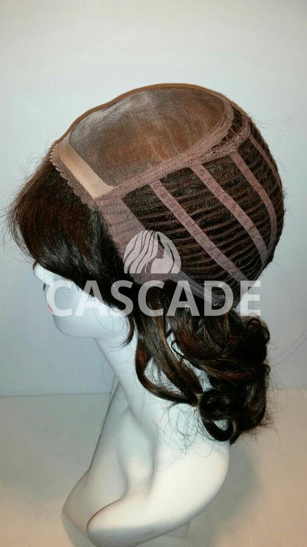Технология 100% ручной работы (тамбуровка) выполняется только в теменной области парика. Благодаря этому можно легко менять форму прически и направление пробора.