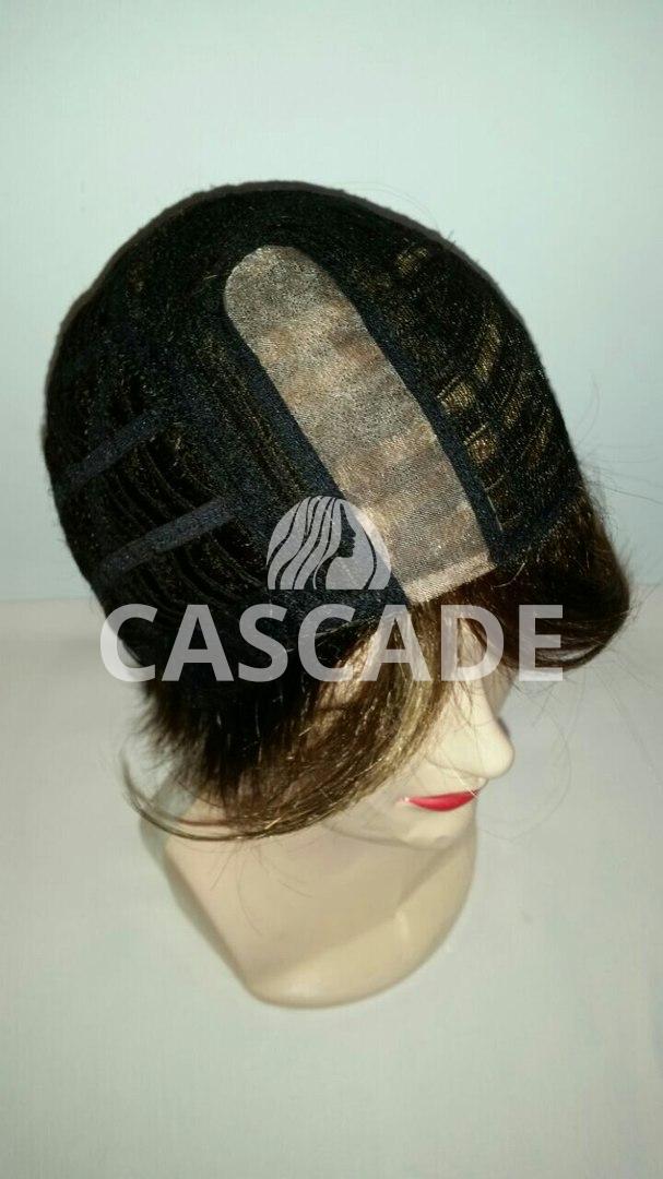 Шапочка парика в области пробора состоит из монофиламента, который имитирует естественный рост волос. Пробор расположен слева, менять его направление нельзя. Остальная часть выполнена из тресса.