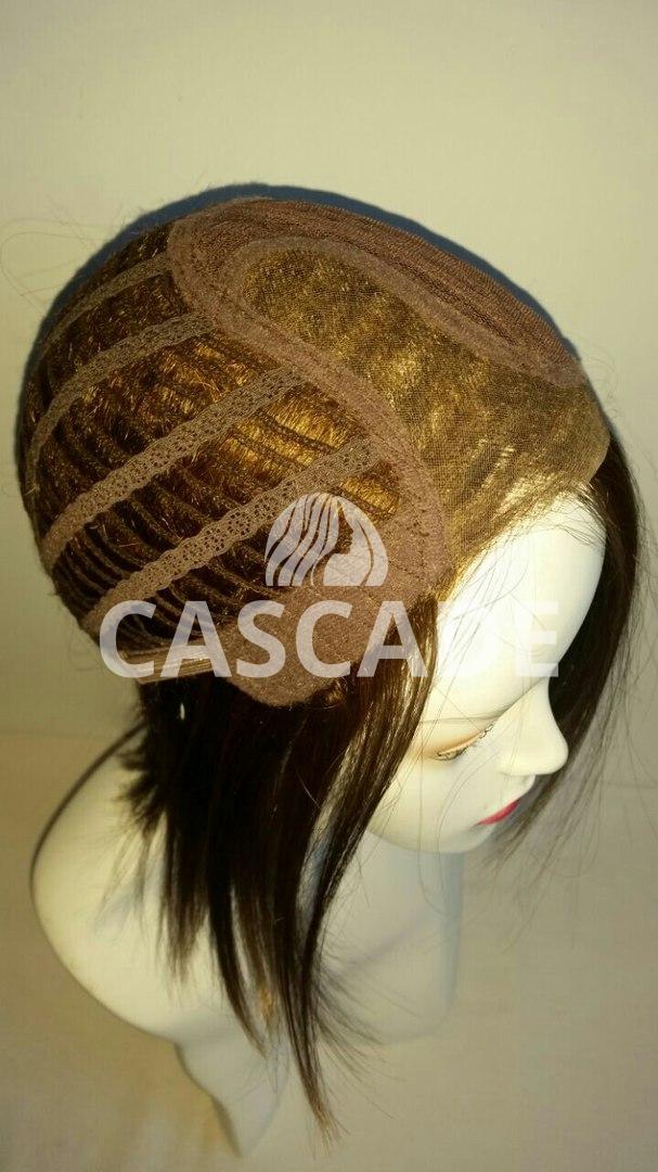 Шапочка парика в области пробора состоит из монофиламента, который имитирует естественный рост волос. Пробор расположен слева, менять его направление нельзя. Остальная часть выполнена из тресса. В парике присутствует невидимая фронтальная линия роста волос (Lace Front), которая состоит из тонкой сварной сеточки. Она позволяет открывать лоб и поднимать челку. При этом краевая линия перехода к волосам парика совершенно не заметна.